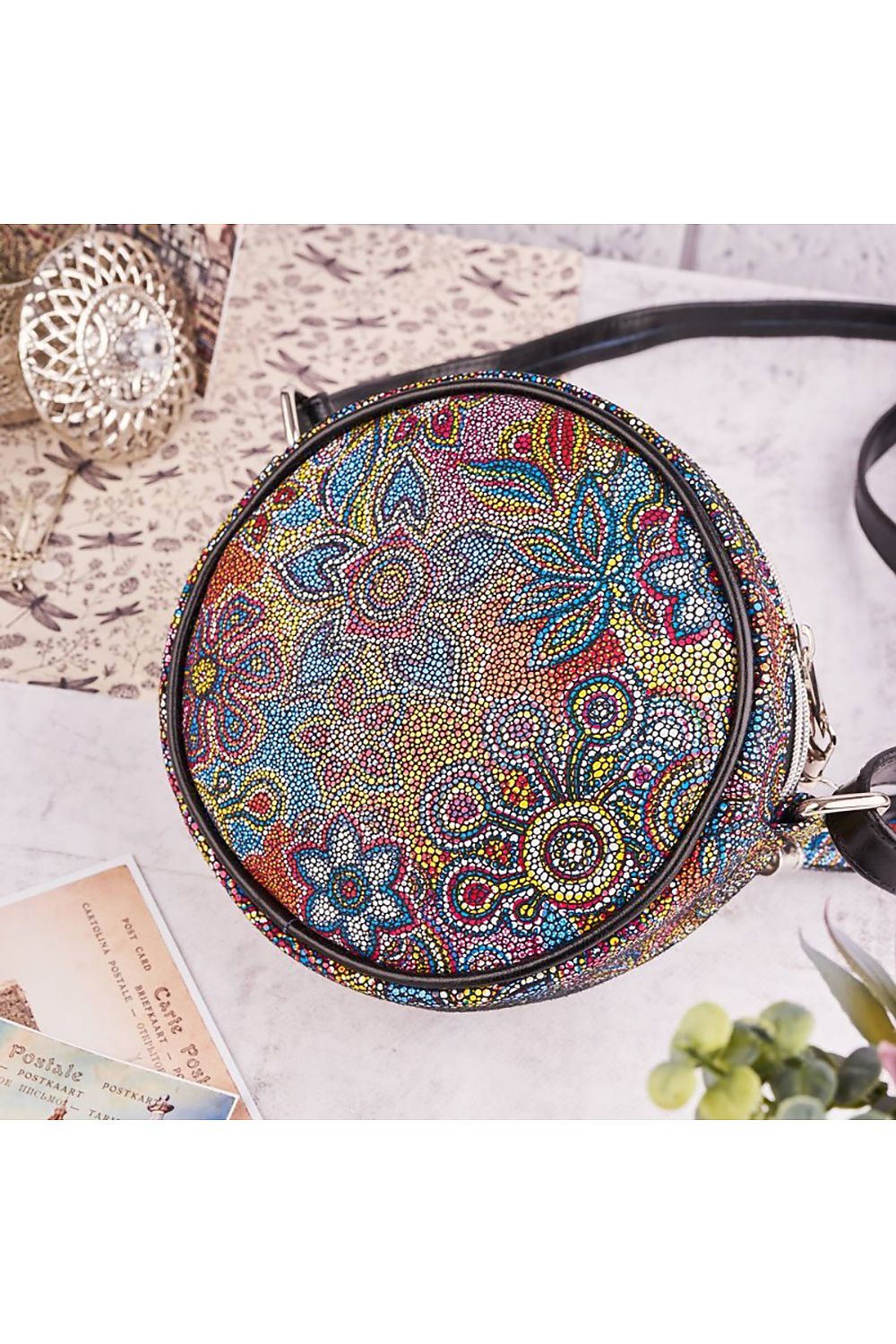 Praktična i elegantna torbica koja savršeno pristaje na rame. Spektakularni uzorak na koži i prirodno kožom obloženi rubovi ističu ovalni oblik torbice. Jedan glavni pretinac sa stylish patentom, dva unutarnja džepa za dokumente ili novčanik. Ručno rađena naramenica od prirodne kože s dodatnom zaštitom od ogrebotina i vlage.
