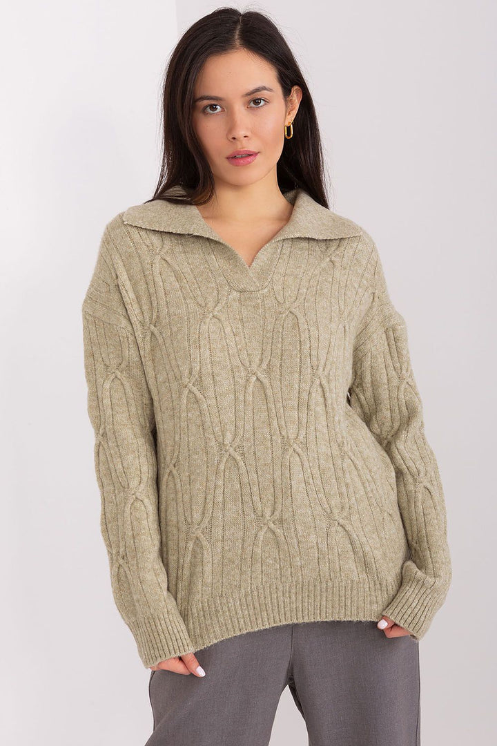 Izrađen od ugodnog akrila na dodir, garantira udobnost pri nošenju. Njegova raznobojna tekstura tkanine dodaje mu karakter, a suptilni dominantni uzorak čini ga elegantnim, ali i dalje prikladnim za ležeran stil. Dugi rukavi pružaju toplinu, a standardna dužina mu daje svestranost. Ovratnik dodaje dašak klase i elegancije. Ovo je pulover koji se lako može kombinirati s različitim stilovima, omogućujući vam da izgledate elegantno i osjećate se ugodno.